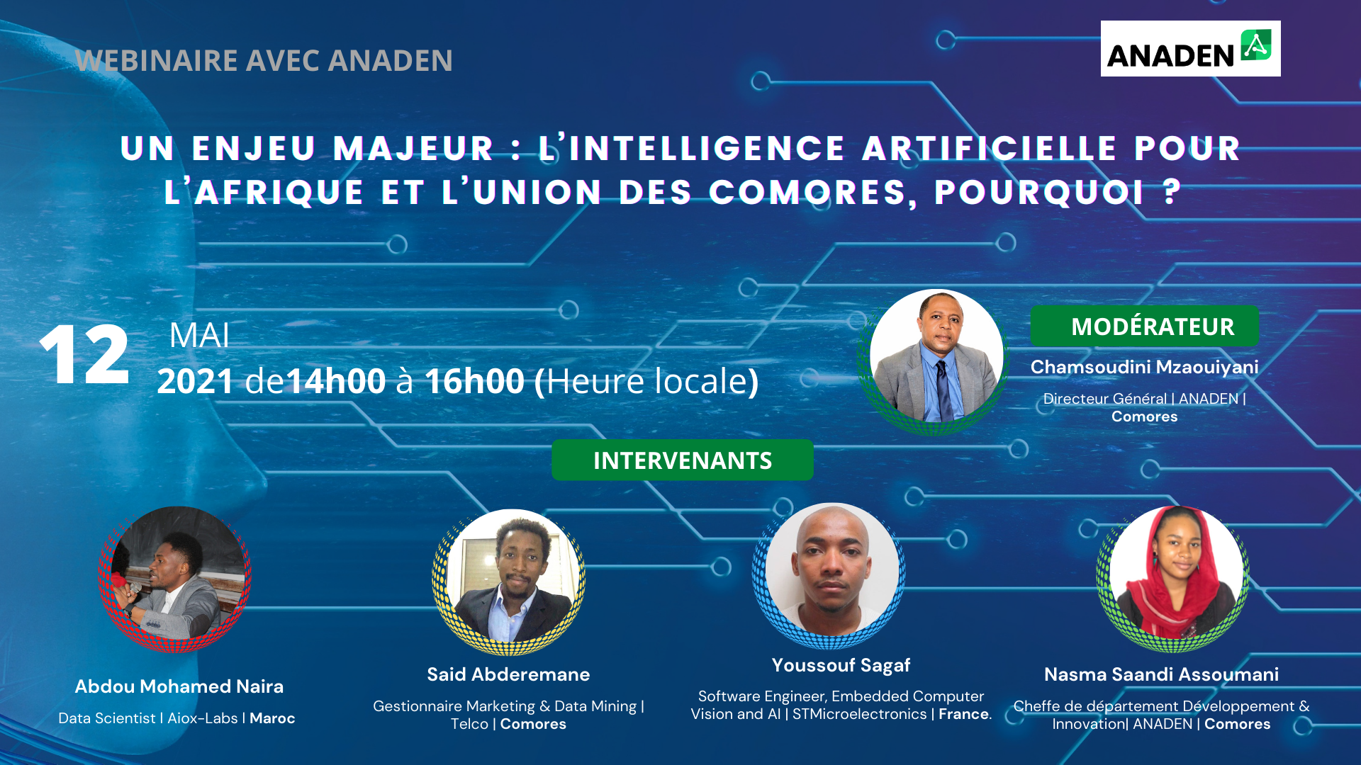 WEBINAIRE ANADEN : Thème l’Intelligence Artificielle (AI) le Mercredi 12 mai 2021 à 14H00 (heure locale)