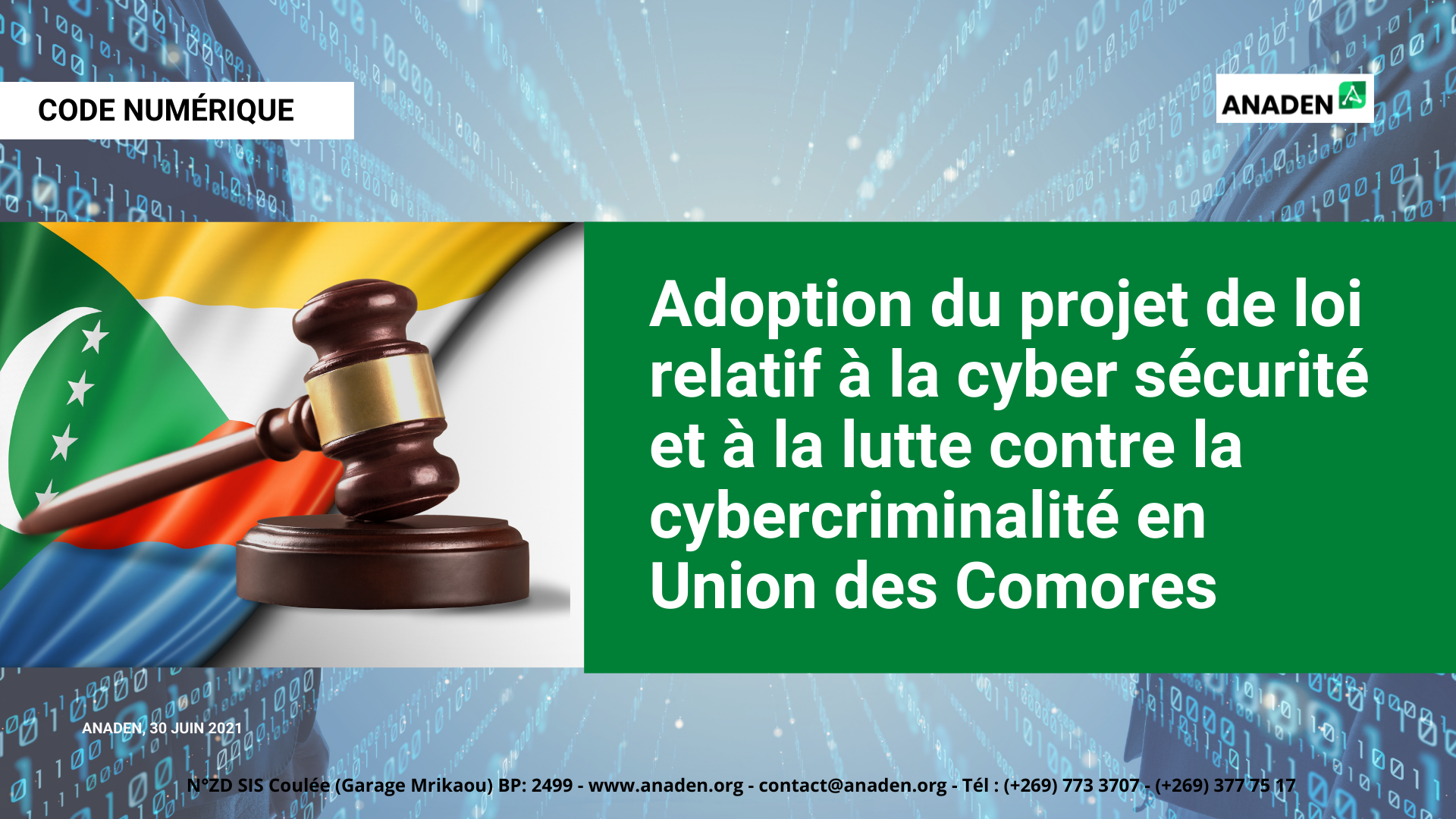 CODE NUMERIQUE : Adoption du projet de loi relatif à la cyber sécurité et à la lutte contre la cybercriminalité en Union des Comores